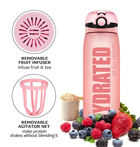 Elvira 32oz Motivational Water Bottle with Time Marker & Removable Fruit Infuser, Leakproof BPA Free Wide Mouth, Ensure…
