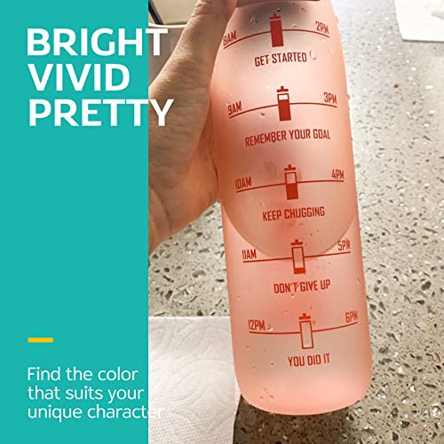 【MOTIVATIONAL QUOTE & TIME MARKER】- With motivational quote and time marker on it, the water bottle is perfect for helping you stay motivated to drink enough water throughout the day. Featured with frosted appearance helps you check the actual amount of water intake easily and clearly. It is fun and easy for any fitness goal including weight loss, muscle gain, appetite control and overall health.