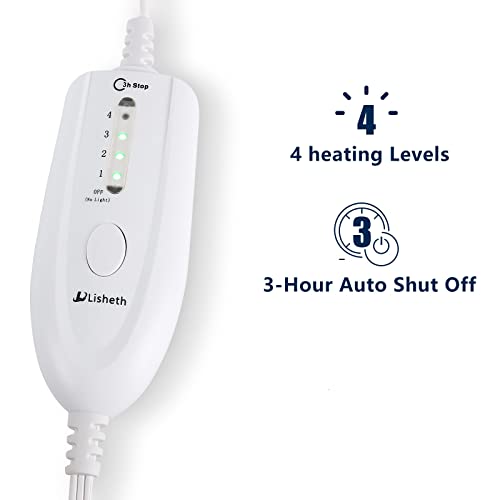 Specification: L Lisheth Electric Throw Blanket 50*60″ Fast Heating with Over Heat Protection, 4 Heating Levels & 3 Hours Auto Off, ETL Certification, Heated Throw Gray Flannel + Beige Cotton Wool, Machine Washable