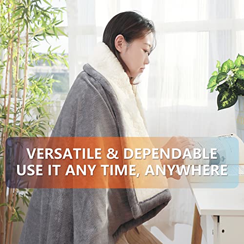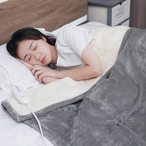 L Lisheth Electric Throw Blanket 50*60″ Fast Heating with Over Heat Protection, 4 Heating Levels & 3 Hours Auto Off, ETL Certification, Heated Throw Gray Flannel + Beige Cotton Wool, Machine Washable