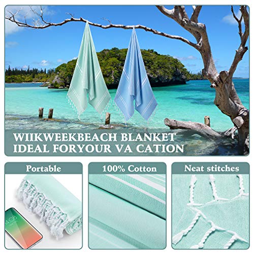 WIIKWEEK Turkish Beach Towels Set of 2, 38”X71” 100% Cotton Lightweight Turkish Towel, Quick Dry and Portable Fashion…